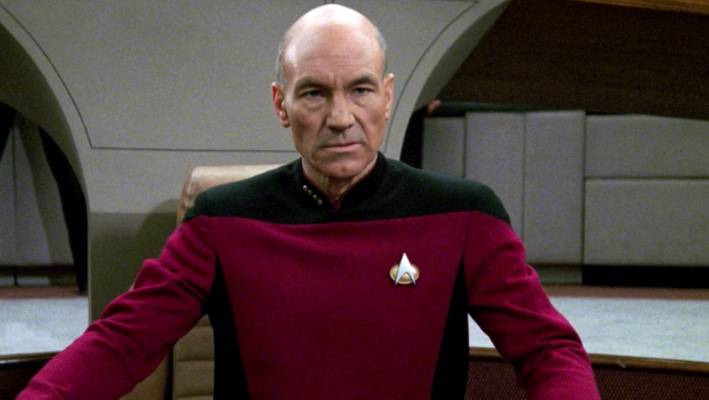 Patrick Stewart in his role as Captain Jean-Luc Picard on the Star Trek: The Next Generation TV series and film franchise.